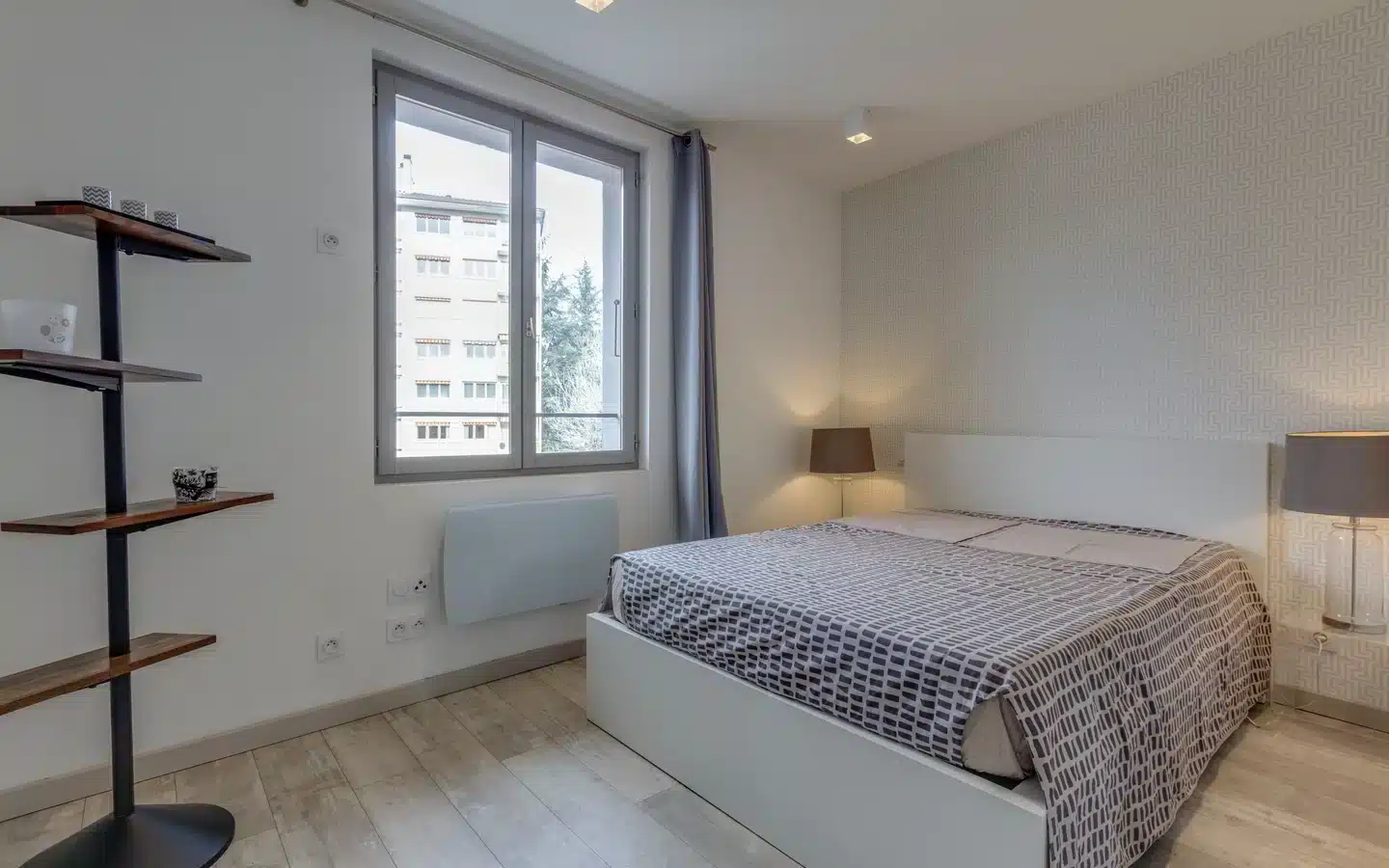 A truly unique property in the heart of the Albigny district, located on the 2nd floor of a well-maintained, 3-story building. This 2-room apartment, with a living area of 42.19 sqm (43.98 sqm of floor space), underwent a complete renovation in 2016 using high-quality materials. It comprises a bright and airy living room with no overlooking neighbors and a south-facing aspect, featuring an open-plan fitted and equipped kitchen, a lovely bedroom with a built-in wardrobe, a shower room with space for a washing machine, a separate WC, and a storage room.
