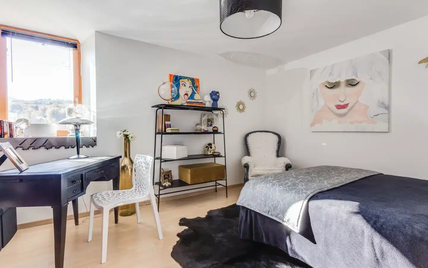 This high-quality property comprises an entrance hall with storage space, a living room with a double-sided fireplace opening onto the dining room and fitted kitchen. A sleeping area with a master suite comprising a dressing room and a shower room; two further bedrooms with a bathroom and a dressing room.