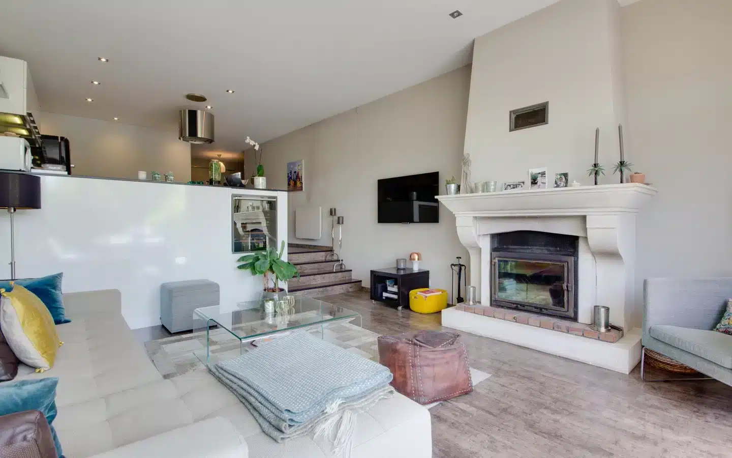 This high-quality property comprises an entrance hall with storage space, a living room with fireplace, a large fitted kitchen, a bedroom with dressing room and access to the terrace, a bedroom with dressing room, a study/guest room, a bathroom with walk-in shower, separate toilet and laundry room.