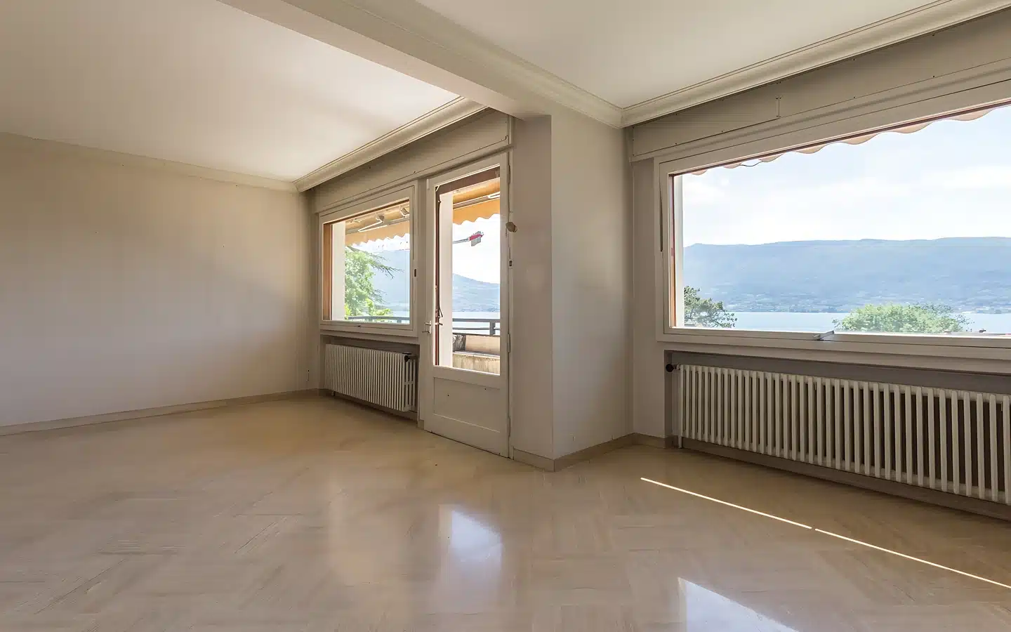 The house is spread over three levels. On the ground floor, a living room and dining room open onto a terrace facing the lake, providing a bright and welcoming space to enjoy the scenery. The separate kitchen, two bedrooms and a bathroom on the same level complete this floor, combining comfort and functionality.