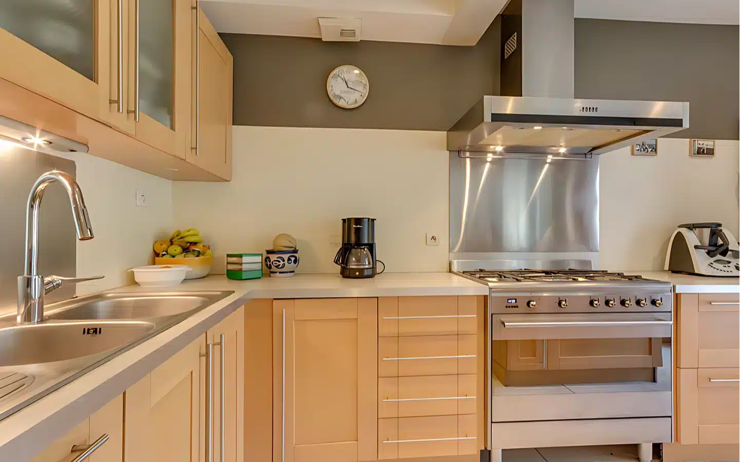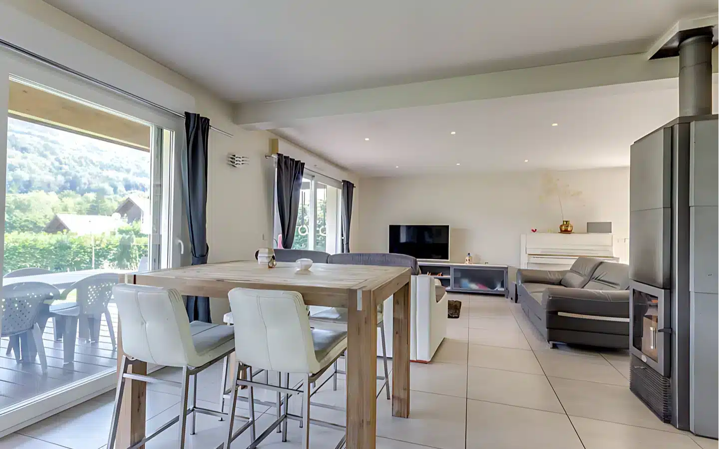 Exclusive! Pleasant, well-maintained house comprising a beautiful main room with wood-burning stove and fitted kitchen with central island. All opening onto a ground-level terrace and sunny garden. Upstairs, there are three bedrooms, a study, a bathroom with bath and shower, and a shower room. A laundry/utility room, a garage with attic space and a carport complete this high-quality property.