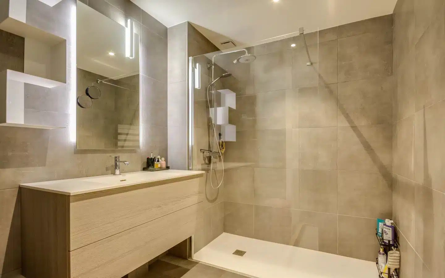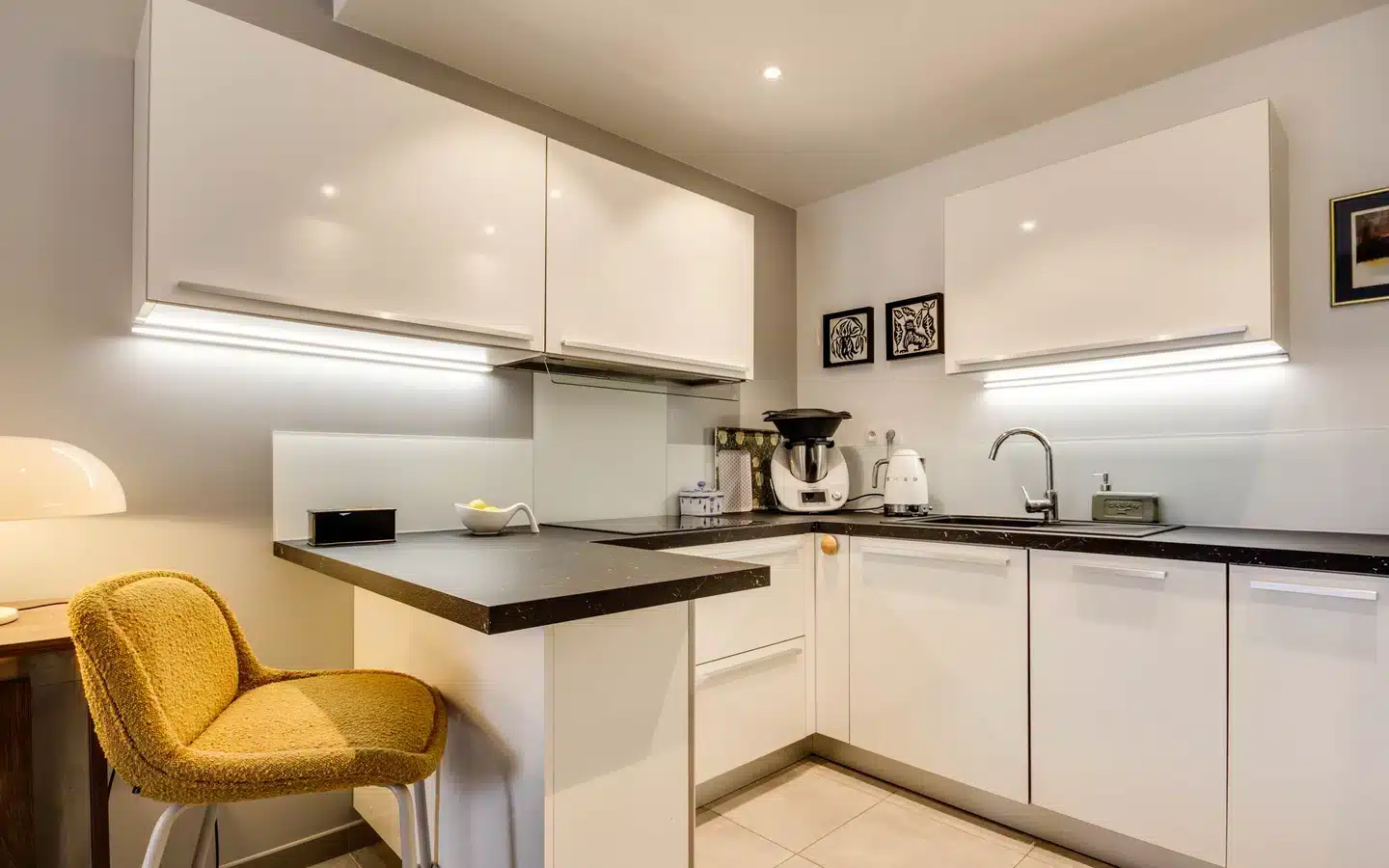 Unique location for this 60 sqm apartment on the ground floor of a small, high-quality, recently built residence. The main room consists of a fitted open-plan kitchen and opens onto a large 30 sqm terrace and south-west facing garden.