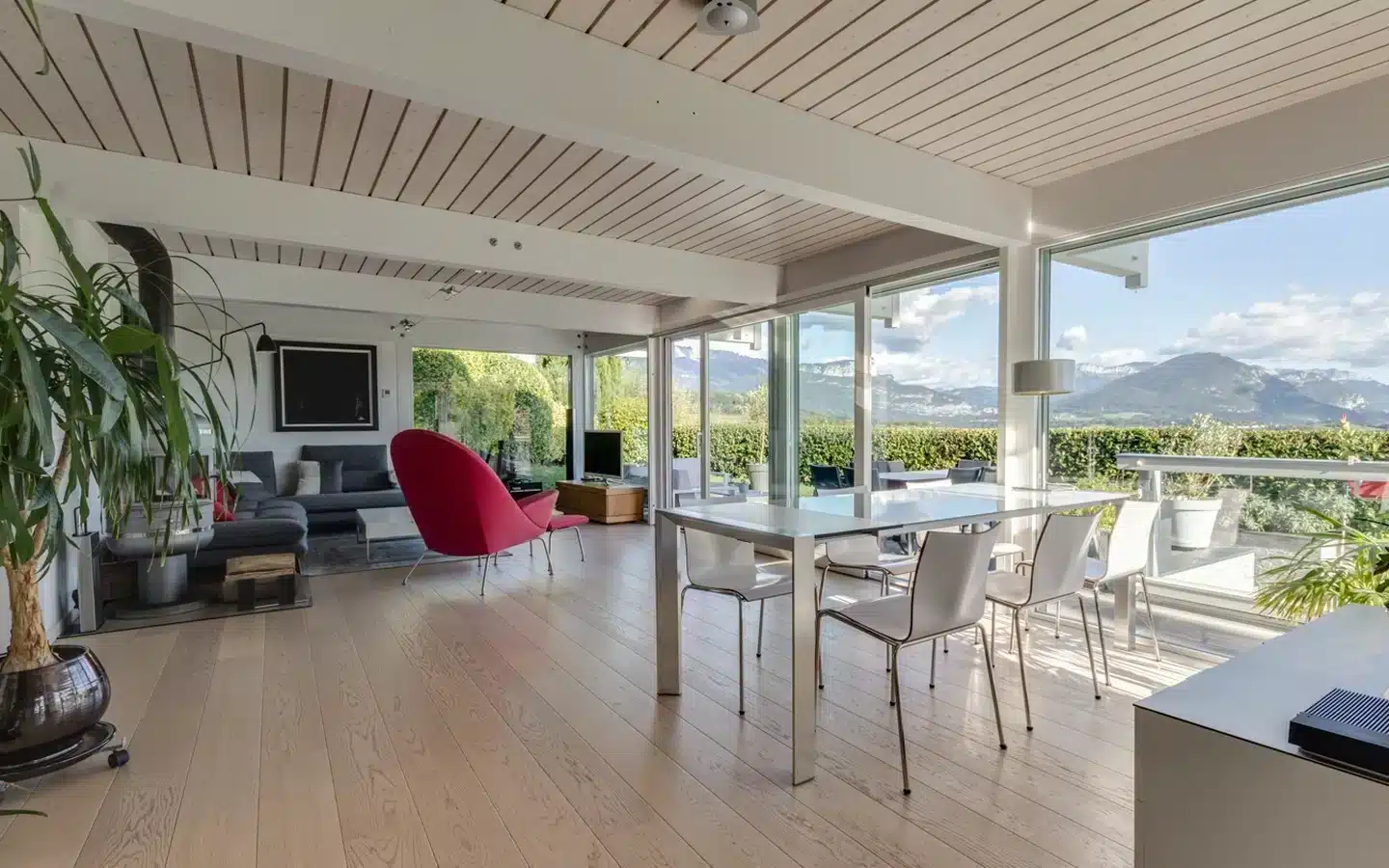 Located in the highly sought-after Promery area of Pringy, this 206 sqm timber-framed house combines quality construction, modern comfort and an exceptional natural setting. Fully maintained, it offers panoramic views of the mountains and lake in a quiet residential environment.