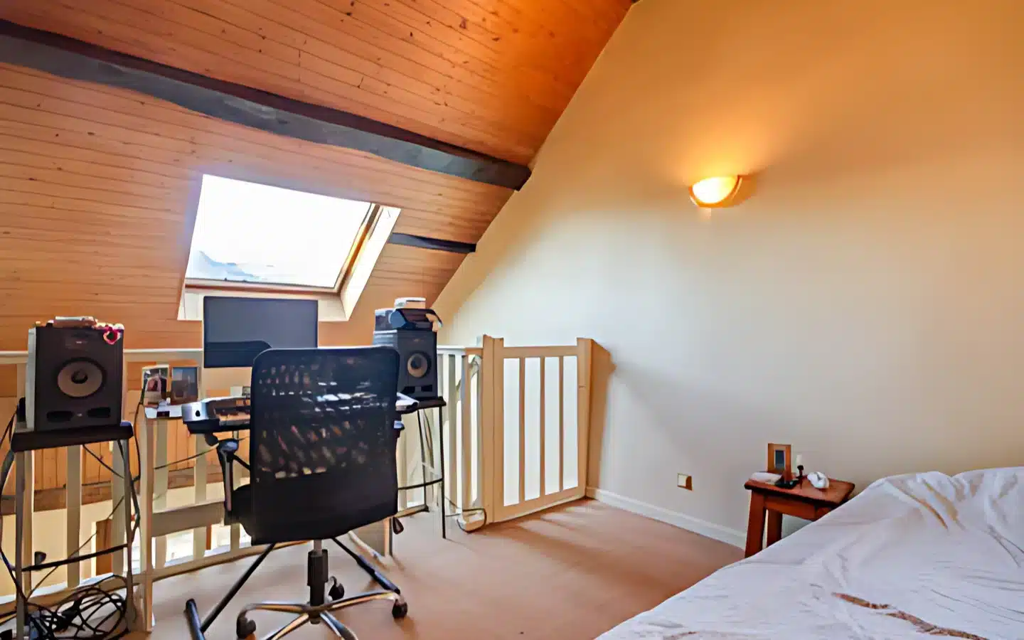Upstairs you will find 2 bedrooms, a bathroom with WC, a mezzanine and storage space.